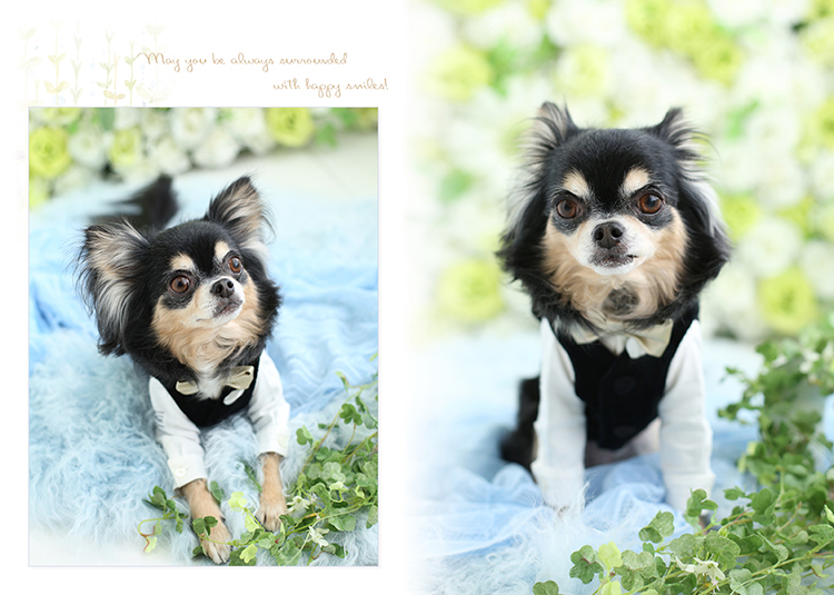 ペットも家族の一員、お誕生日、記念日に記念写真を残しませんか? おめかししてお越しくださいませ。 ※価格はすべて税込表示となっております。※お写真の仕上がりは通常3週間いただいております。 ※データの保管期限は撮影日から1年です。※シーズン中や年末年始などは1ヶ月、加工商品(デザインアルバム・フレーム)も1ヶ月いただいております 。※撮影が多い日、着物などのお客様が多い日はご遠慮いただく場合がございます。※撮影の際はペットシーツをご持参ください。 ペットフォトギャラリー